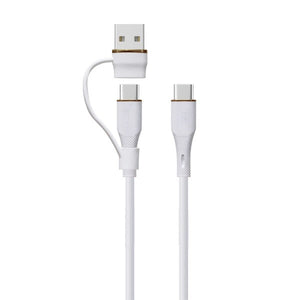 LZEL Celeris PowerDuo β 2-in-1 USB-C to USB-C 100W Silicone Cable (1m) Built-in USB-A connector | White
