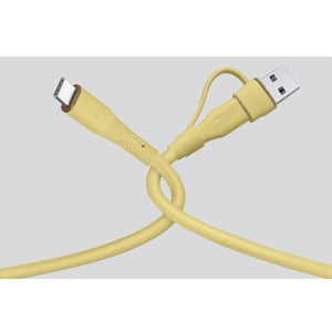 LZEL Celeris PowerDuo – 2-in-1 USB-C to USB-C 100W Silicone Cable (2m) Built-in USB-A connector | Yellow