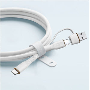 LZEL Celeris PowerDuo – 2-in-1 USB-C to USB-C 100W Silicone Cable (2m) Built-in USB-A connector | White