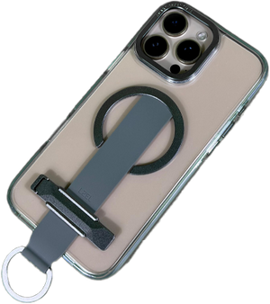 LZEL iPhone 16 Pro Max Primemag Grip Anti-drop Case With Metal Ring And Silicone Band Clear/Gray