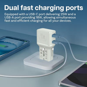 25W + 20W dual ports (not 18W like cheap chargers) – power a MacBook Air and iPhone at full speed.