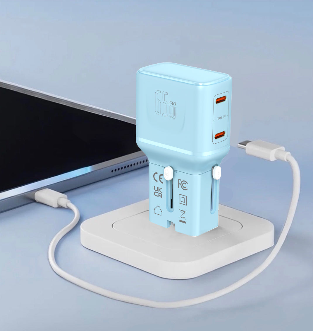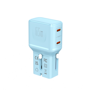 LZEL TravelPro Series Dual Port GaN Travel Wall Charger 65W I Dual Type-C Output I Global compatibility I Blue