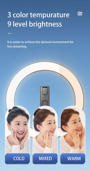 10β RGB Ring Light with 3 Color Temperatures & 9 Brightness Levels
